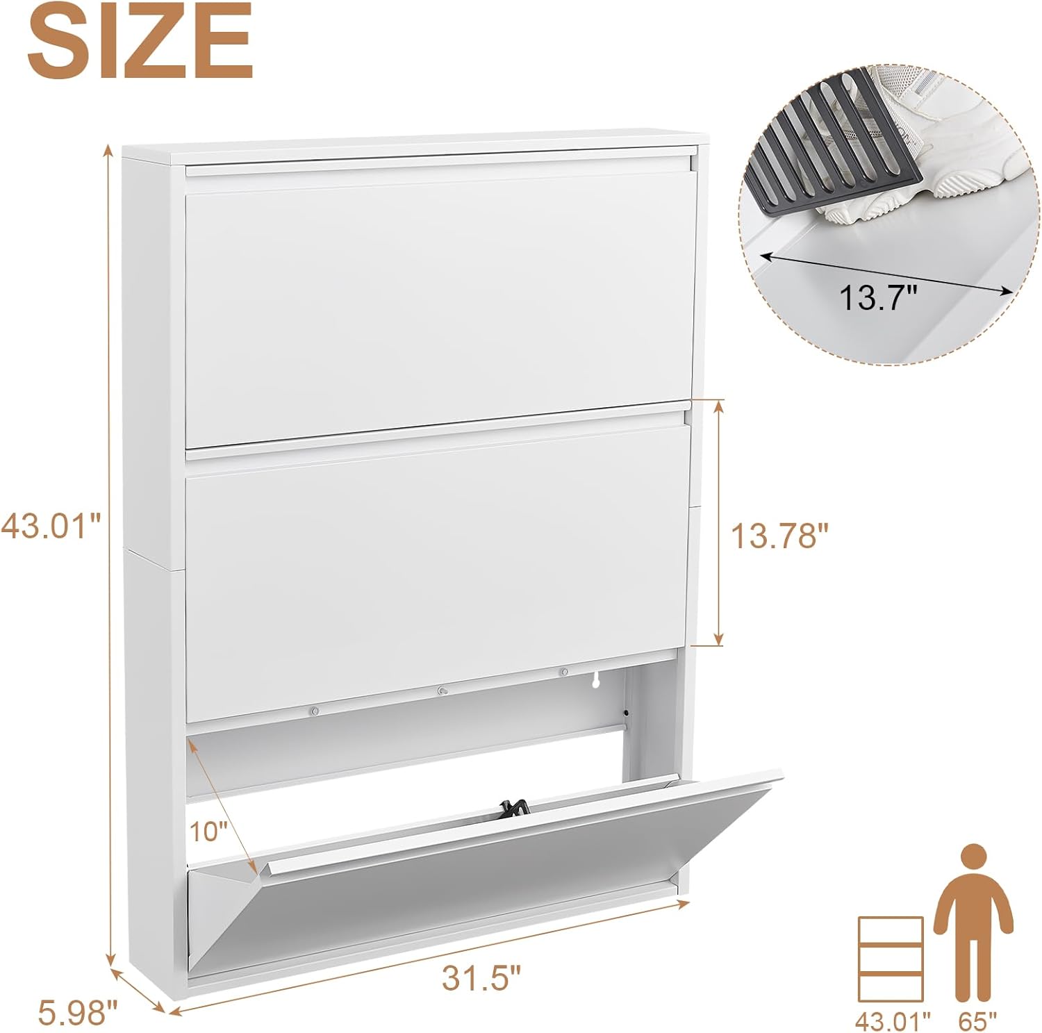 Declutter your entryway without compromising style. The LUCYPAL Metal Shoe Cabinet is a sleek, wall-mounted storage solution designed to organize your home and elevate your space.