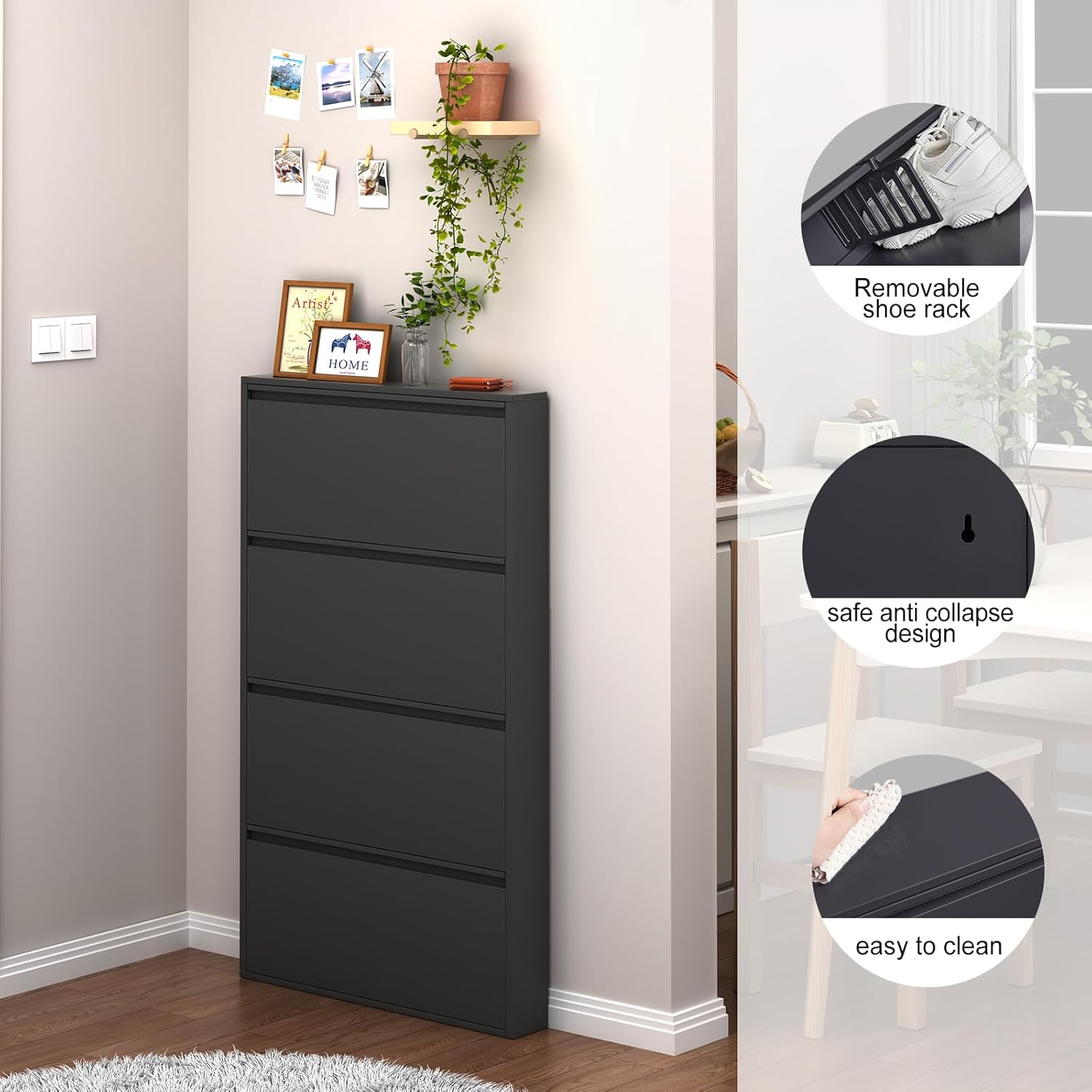- Flip Drawer System: Hidden flip-down drawers keep shoes organized and out of sight, with adjustable compartments to fit all types of footwear.