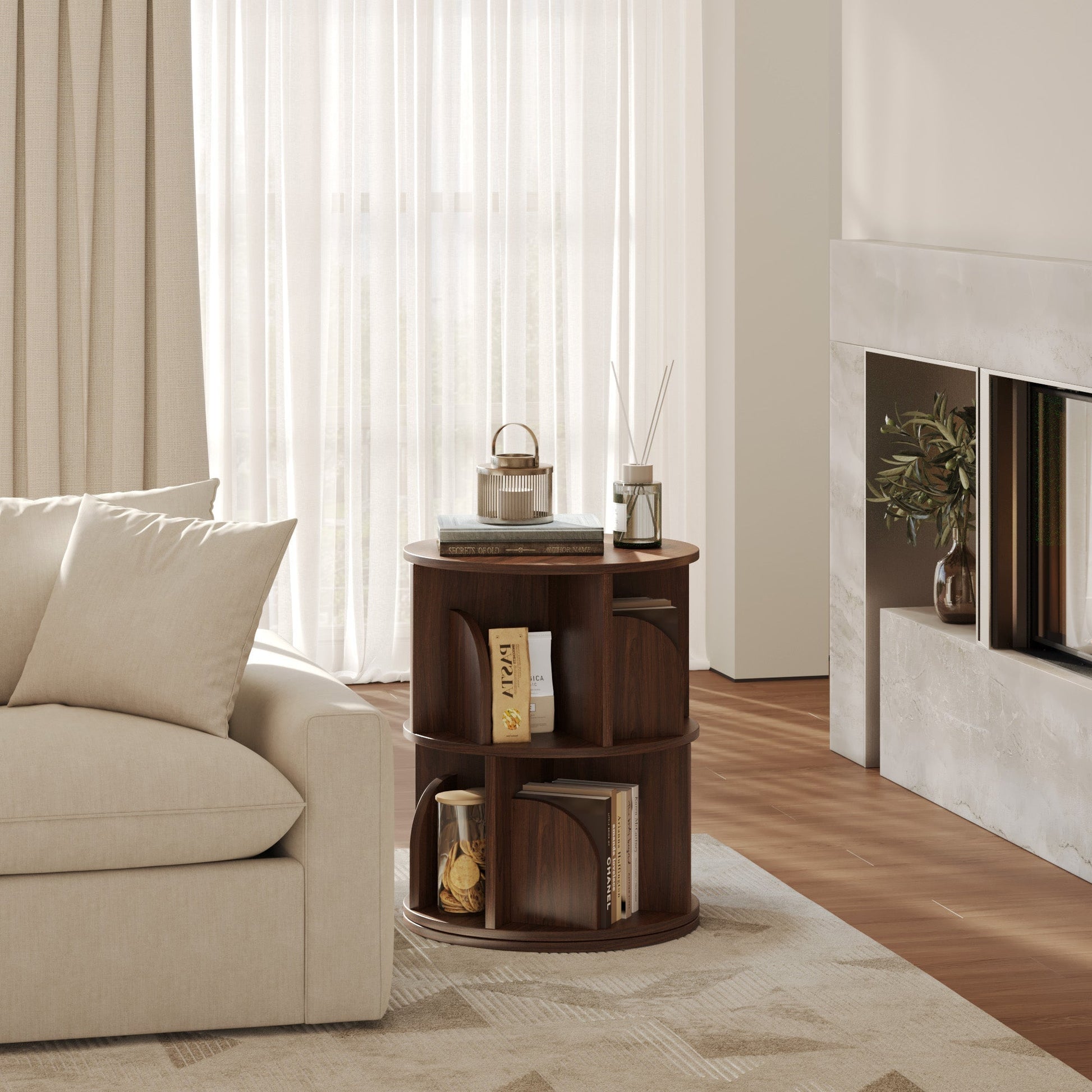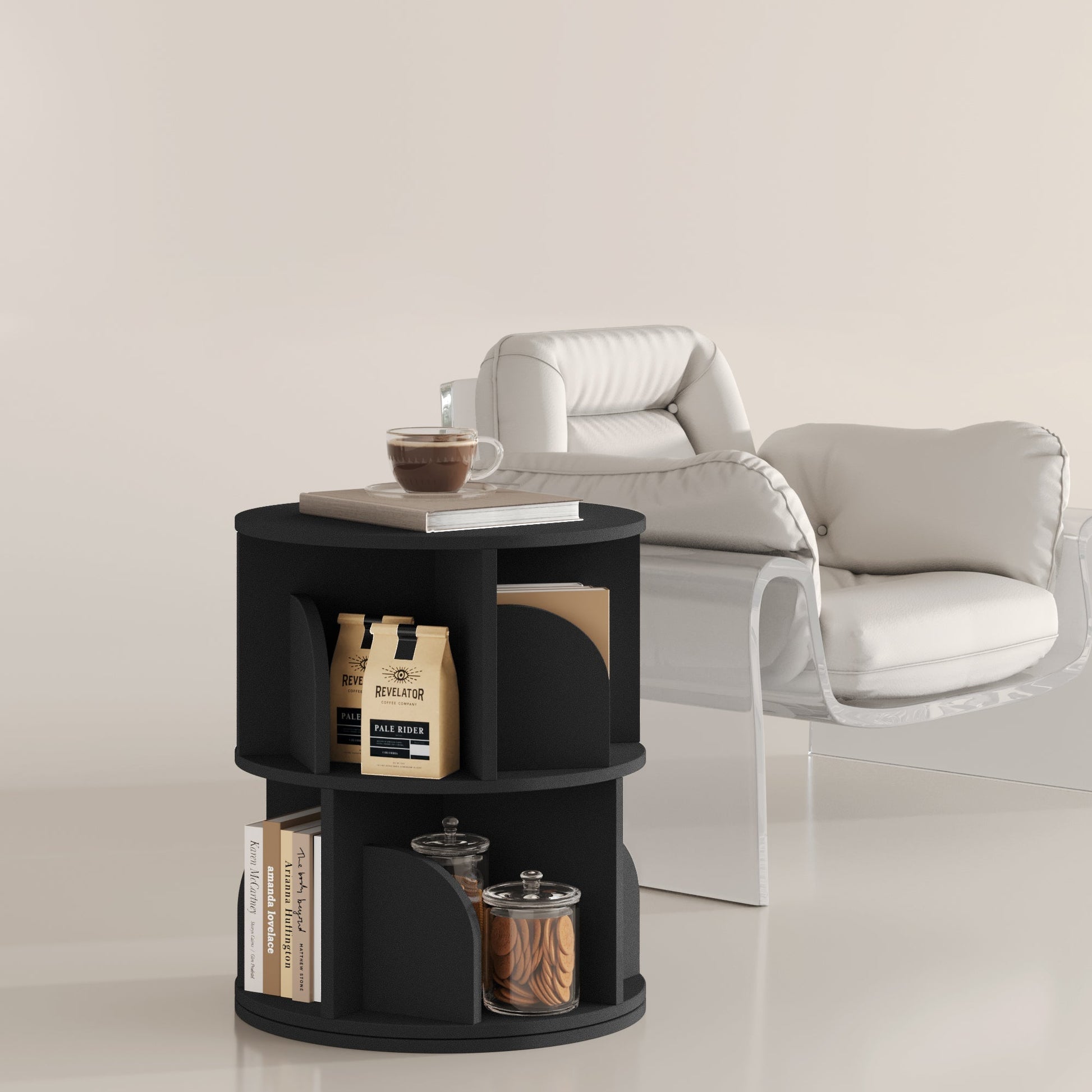 This 360° Rotating Bookshelf is crafted with modern minimalism and functionality in mind.